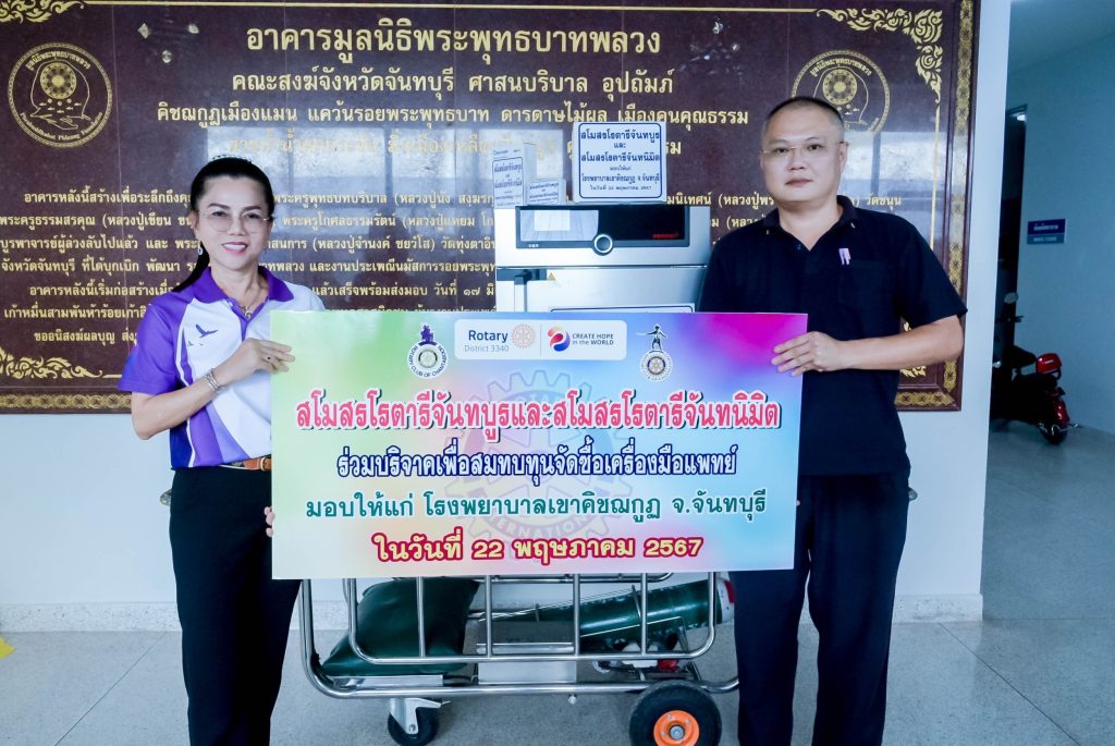 สโมสรโรตารีจันทบูรร่วมกับสโมสรโรตารีจันทนิมิตมอบเครื่องมือแพทย์ให้โรงพยาบาลมูลค่ากว่า 1.2แสนบาท